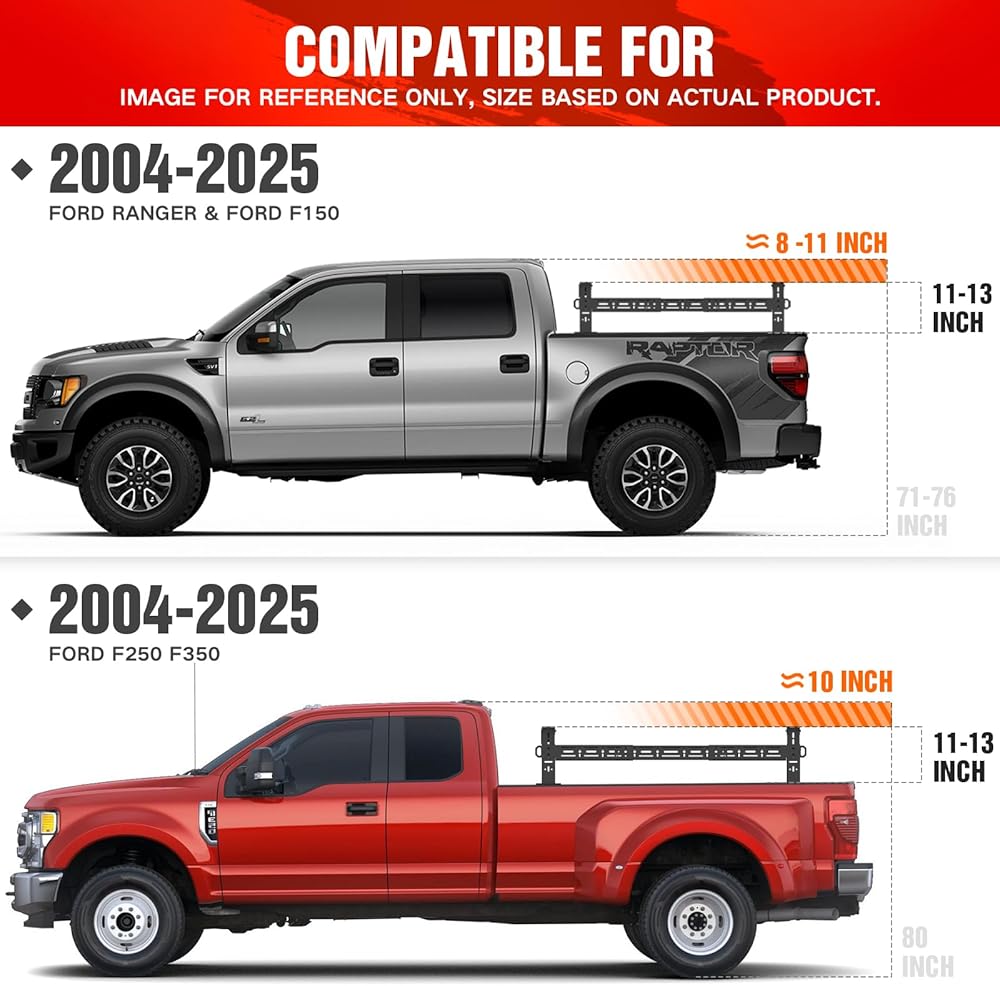 【Compatibility】: Before making your purchase, please ensure that the bed rack is compatible with 2004-2025 Ford F-150 F-250 F-350 & 2004-2025 Ford Ranger. (Not compatible for truck with Tonneau Cover & Bed Cover)