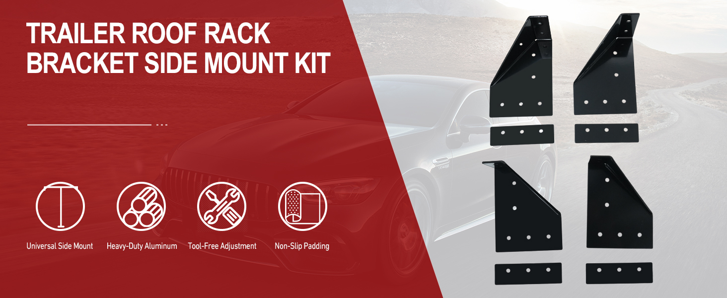 Side-Mount Strength: Four-piece gloss-black powder-coated bracket set: 2 left-hand + 2 right-hand bends, CNC-shaped from heavy-gauge steel to support heavy-duty racks, rooftop tents or awnings on teardrop campers, enclosed trailers, RVs and DIY builds.