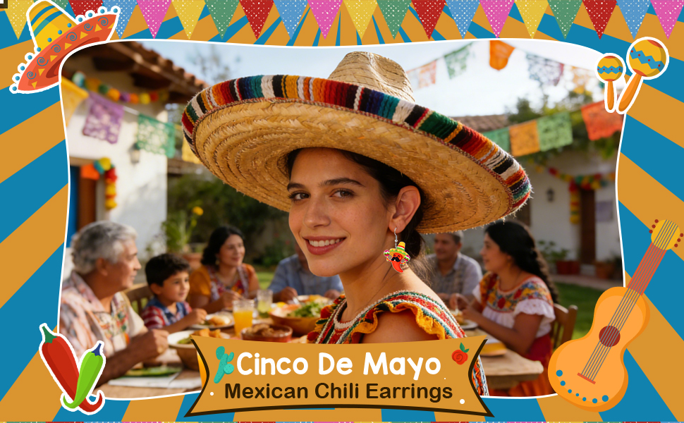 Fiesta Earrings for Women:These Mexican Cinco de Mayo Earrings are unique in design,which contain a variety of styles of sombrero earrings chili earrings cactus earrings Fiesta letter Earrings,these carnival earrings are filled with holiday cheer and are a good party to ignite the holiday mood Carnival earrings.