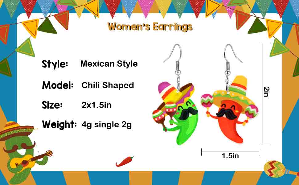 Cinco De Mayo Earrings:This Mexican earring combines the characteristics of the Mexican holiday;Cinco de Mayo earrings are simple and unique;It is very suitable for wearing during holidays or at work to add festive atmosphere.