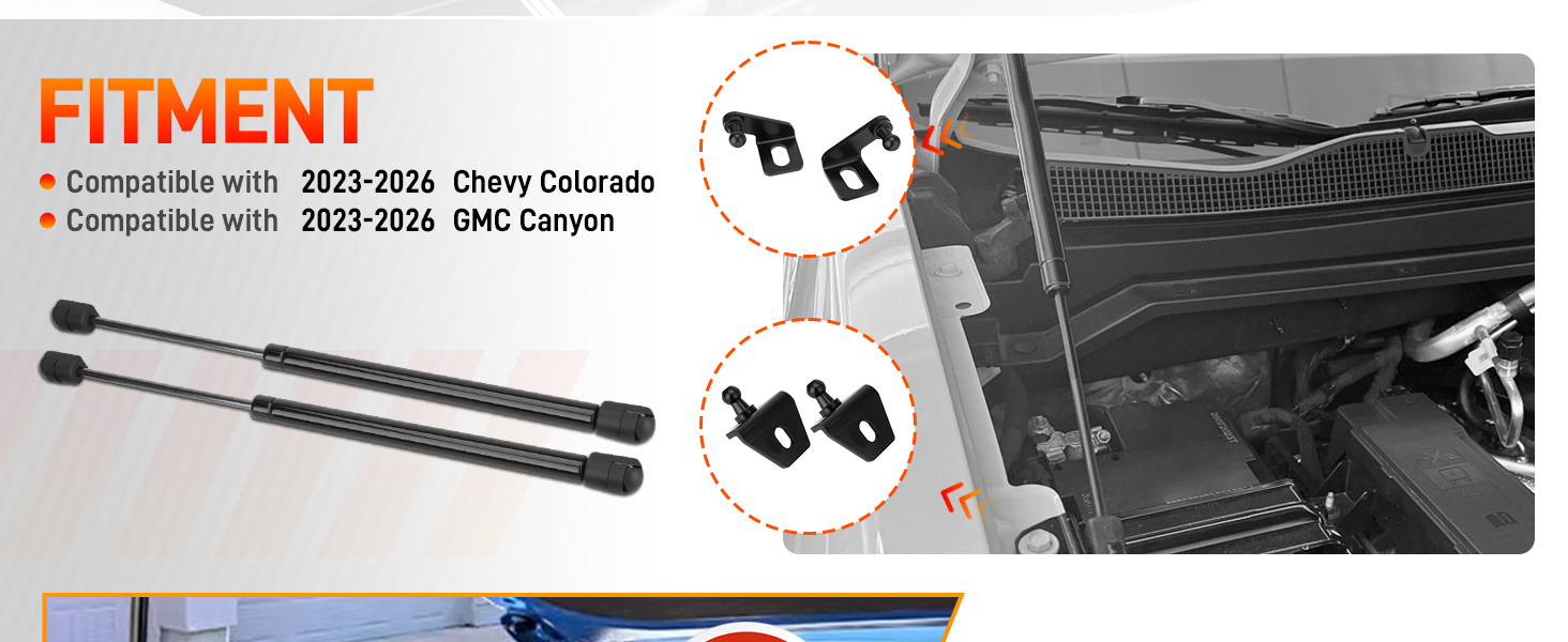 【FITMENT】 This hood lift support compatible with 2023-2026 Chevy Colorado,compatible with 2023-2026 GMC Canyon