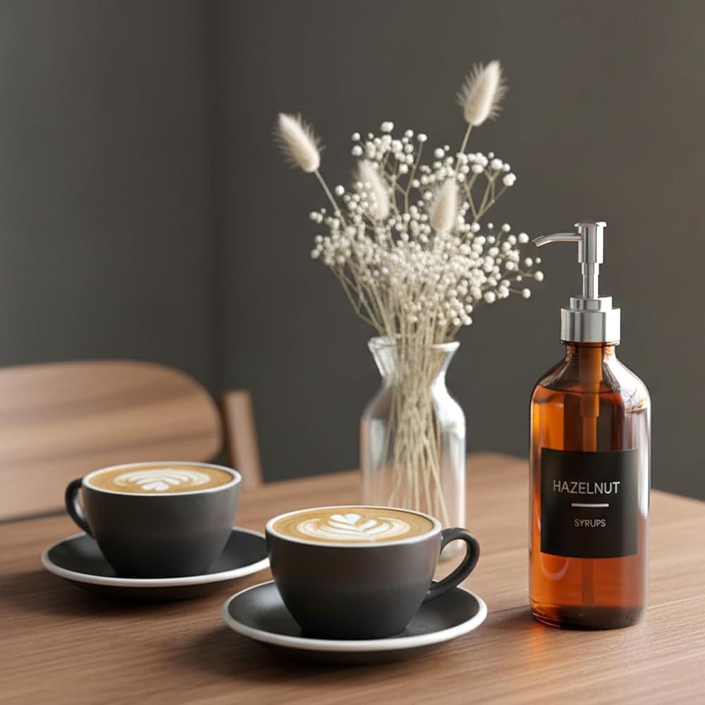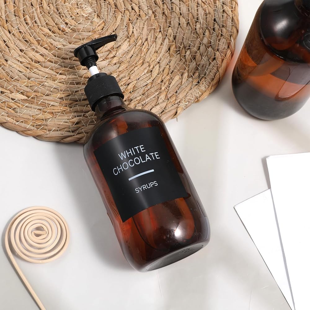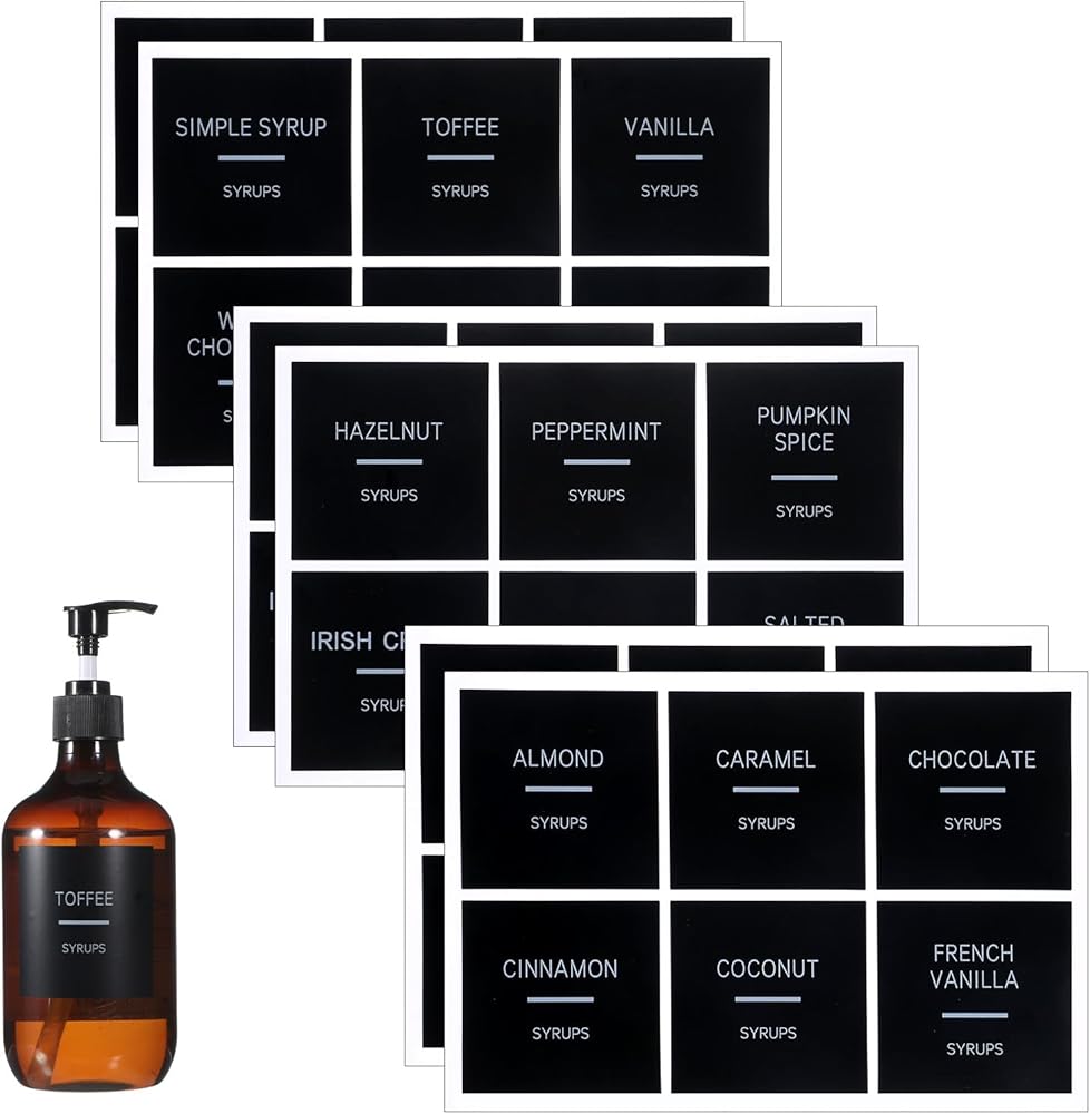 【Standard Size】The size of coffee label stickers is 2.5 x 2.5 inch, a size determined to be optimal for fitting standard syrup bottles and containers. This uniform sizing ensures all labels align perfectly when applied, creating a neat and organized look for your coffee station decor.