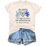 Design: Cute puzzle graphic shirts, autism month shirt , funny autism awareness letter printed , cute autism short sleeve, autism support gift top.