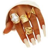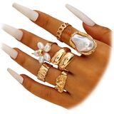 Chunky Gold Irregular Rings: Level up your stack with this cool rings set of chunky gold rings. We're talking a unique mix of irregular pearls for an funky vibe, a dainty floral piece for that comfy touch, and hammered textures for boho edge