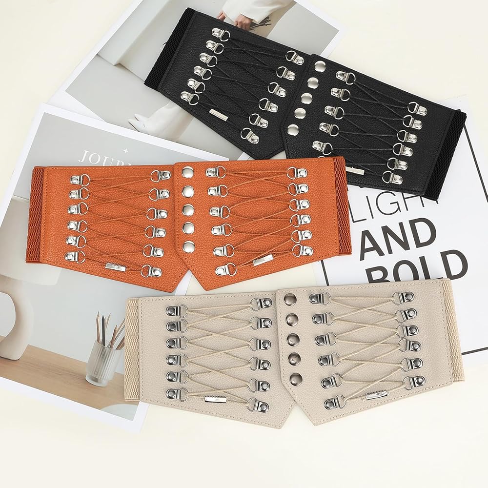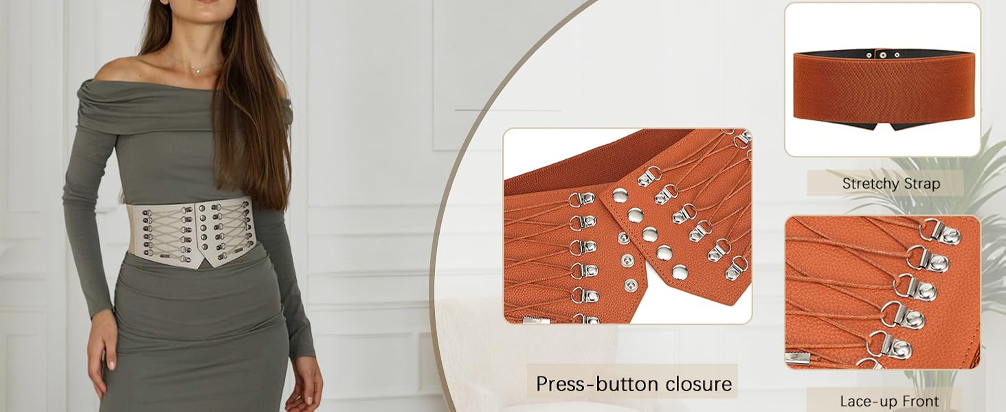 Daily Style:This is the perfect belt to capture that Hollywood look! This super stylish wide front fashion corset belt will add a dramatic curve to your favorite outfit.Beyond parties, cinch this corset belt over jumpsuits, oversized tees, sweaters, or trench coats. Corset belts for women shape a comfy hourglass for work or play.