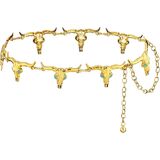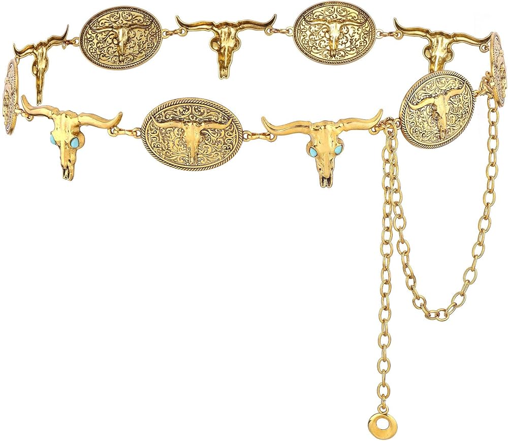 【High Quality】This cowgirl concho chain belt is made of metal alloy with turquoise elements and exquisite carved bull head patterns,it is not easy to fade or break.