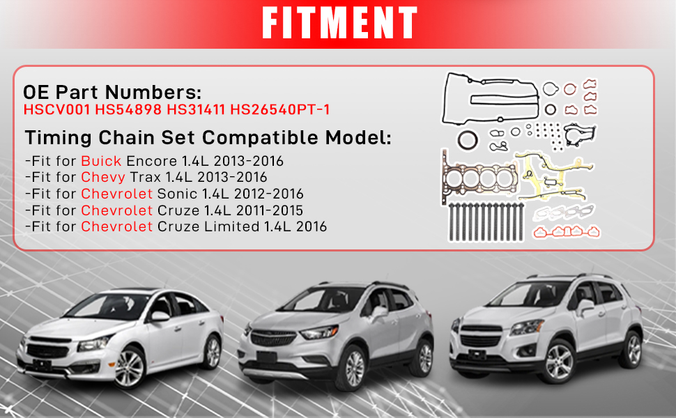 Full Head Gasket Set with Head Bolt Kit (LUJ LUV Engine) FIT 2011-2016 Chevy Cruze Sonic Trax Buick Encore 1.4L Turbo, MLS Gasket Replaces HS26540PT-1 (Not for LE2 Engine) - 1 Set