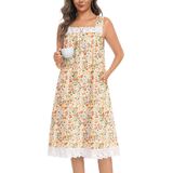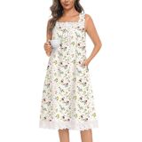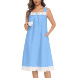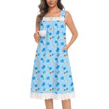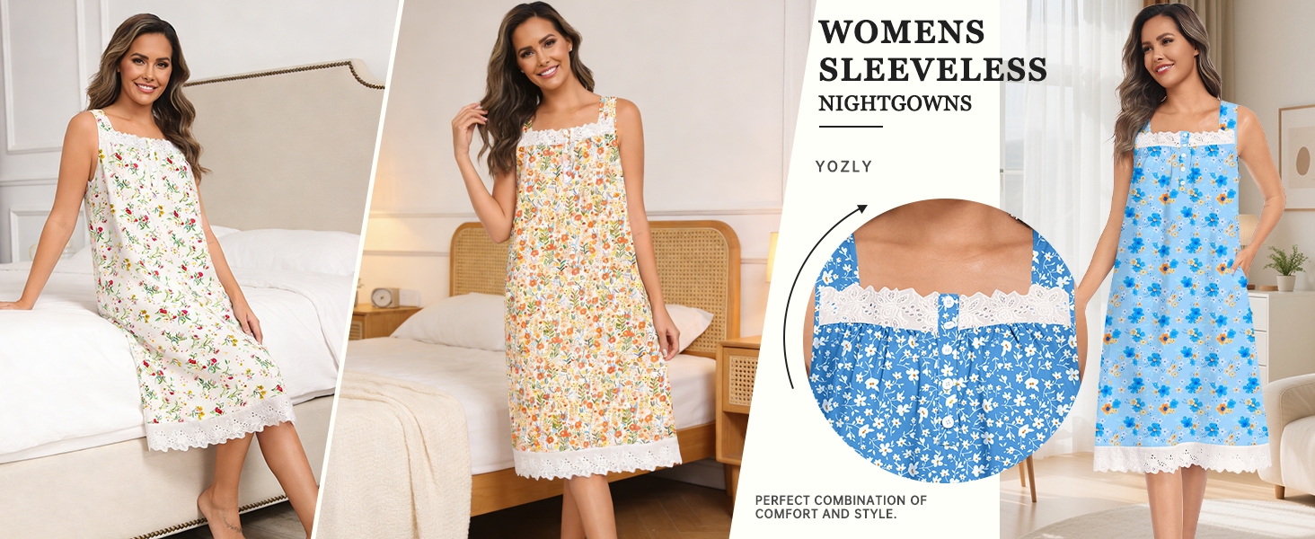 【Sleeveless Square Neck nightgowns】- These sleeveless cotton nightgowns feature delicate lace trim at neck and hem, plus a flattering square neckline. Midi length (knee to calf) balances coverage and style, perfect for chic at-home lounging.