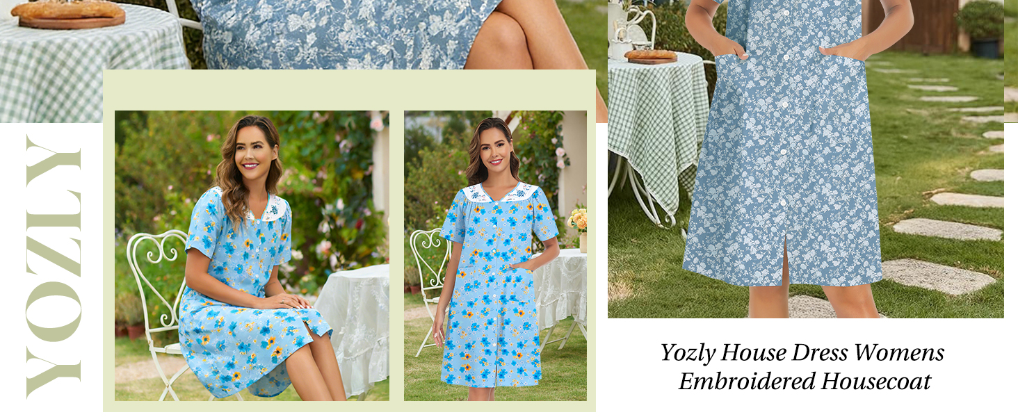 【Two Side Pockets】:lightweight house dresses with two front patch-style pockets you could keep your keys, phone, wallet and more with you whereevery you go. the high-quality cotton allows for the perfect balance of style, comfort, and breathability, it is lightweight and cool