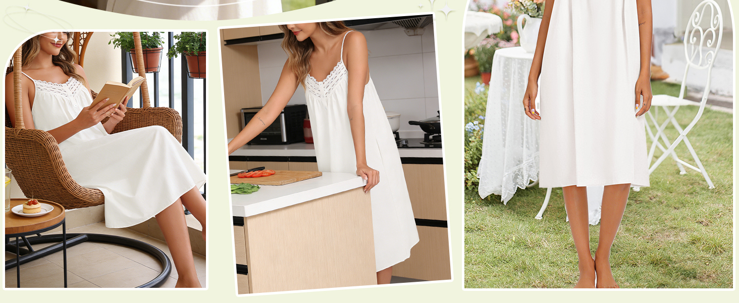 Sleeveless Nightdress Design-Elegant lace on he front and buttons colusre, delicate design make you look more stylish and elegant. Adjustable on-slip shoulder strap for easy fit. Two side pockets of cotton sleeveless nightgown make it more versatile. 6 sizes(S-XXXL) available for your choice
