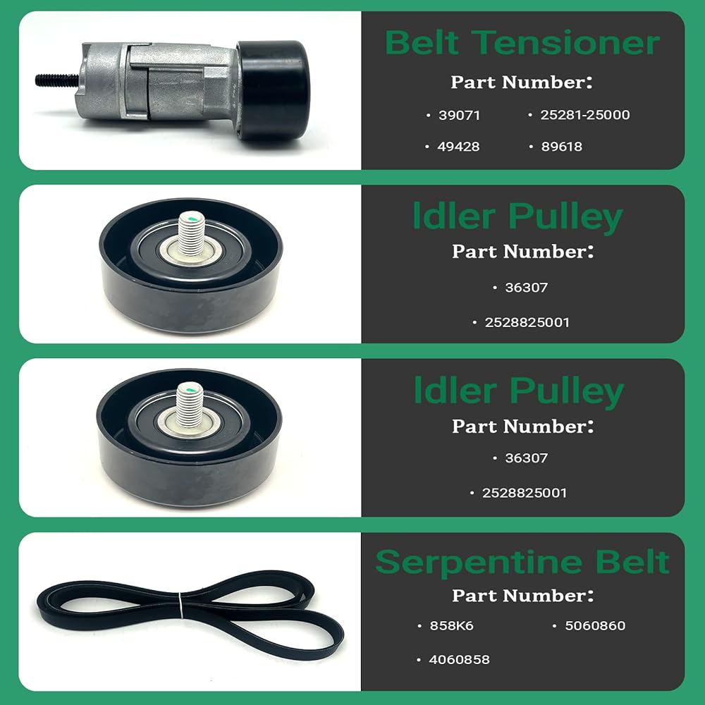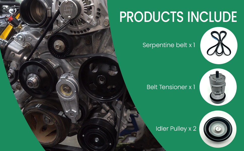 ◇Package Include: Belt Tensioner x1, Serpentine Belt x1,Idler Pulley x2