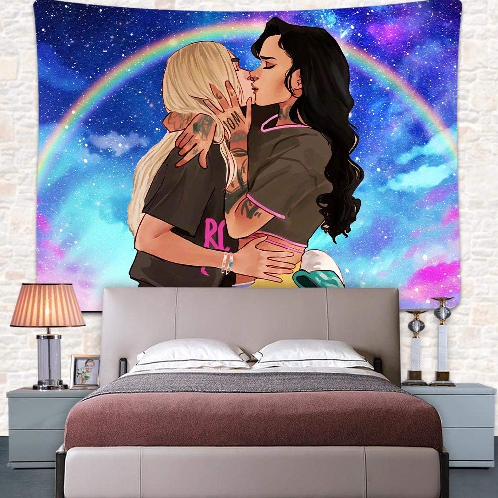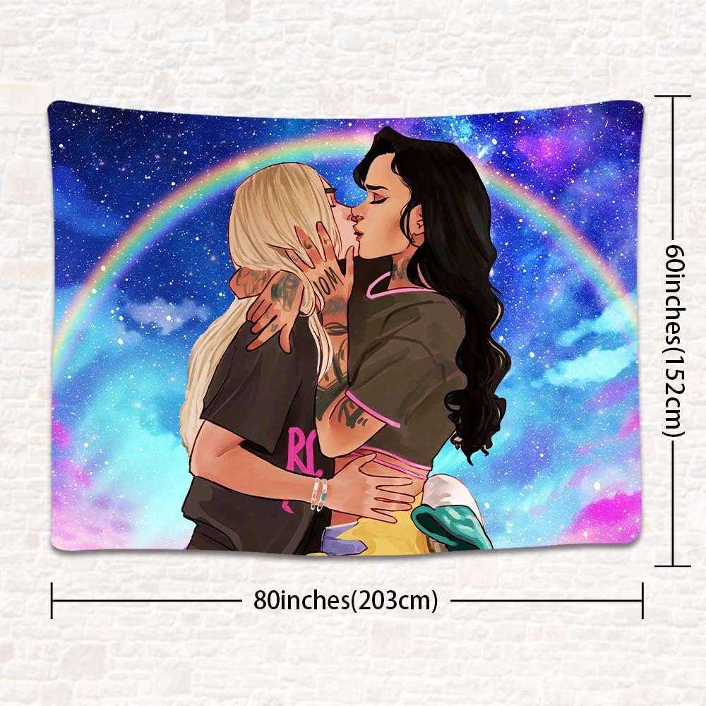 UHOMETAP Love LGBT Lesbian Tapestry Anime Lesbian Love Tapestries, Kiss Tapestry Home Decor for Teens Boys Girls Living Room Bedroom Dorm Room 80x60 Inches GTWYUH416