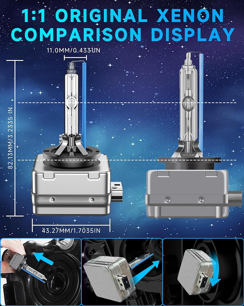 【Important Notes】The packaging includes the replacement of D1S HID headlight bulb for BMW 2007-2017 X3 X5 E70 F15 35i Xdrive 2008-2019 X6 2008-2016 535i 535 i 535xi E60 F10 M5 GT. Please note that the same model may use xenon or halogen versions. [If your BMW X3 X5 E70 F15 35i Xdrive X6 535i 535 i 535xi E60 F10 M5 GT headlight bulbs are halogen bulbs, it is not suitable for replacement. Before placing an order, please confirm if the model year is applicable]