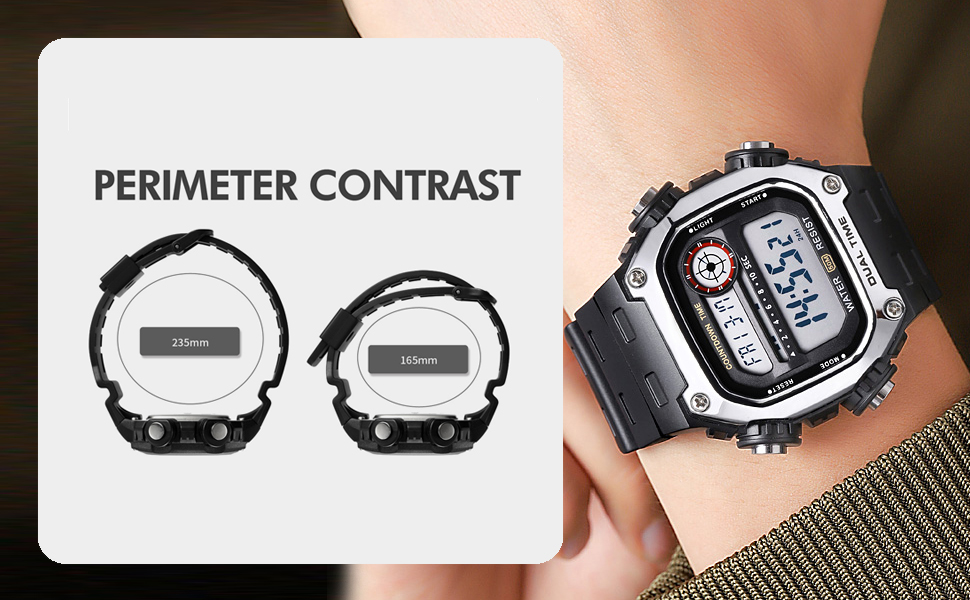 【Shockproof & Waterproof Watch】Built to endure shocks and water exposure, this digital watch boasts a 50-meter waterproof rating, making it suitable for various activities and sports. However, it's crucial to avoid hot water and steam to preserve its functionality. Please refrain from pressing any buttons while submerged, and it's not intended for hot water or swimming.