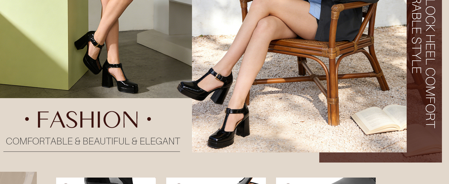 Closed Square Toe & T-Strap Design: With a closed square toe and T-strap detail, these ankle strap heels have a unique design that's both vintage and trendy. They stand out from regular heels, perfect for women who love a distinctive style.