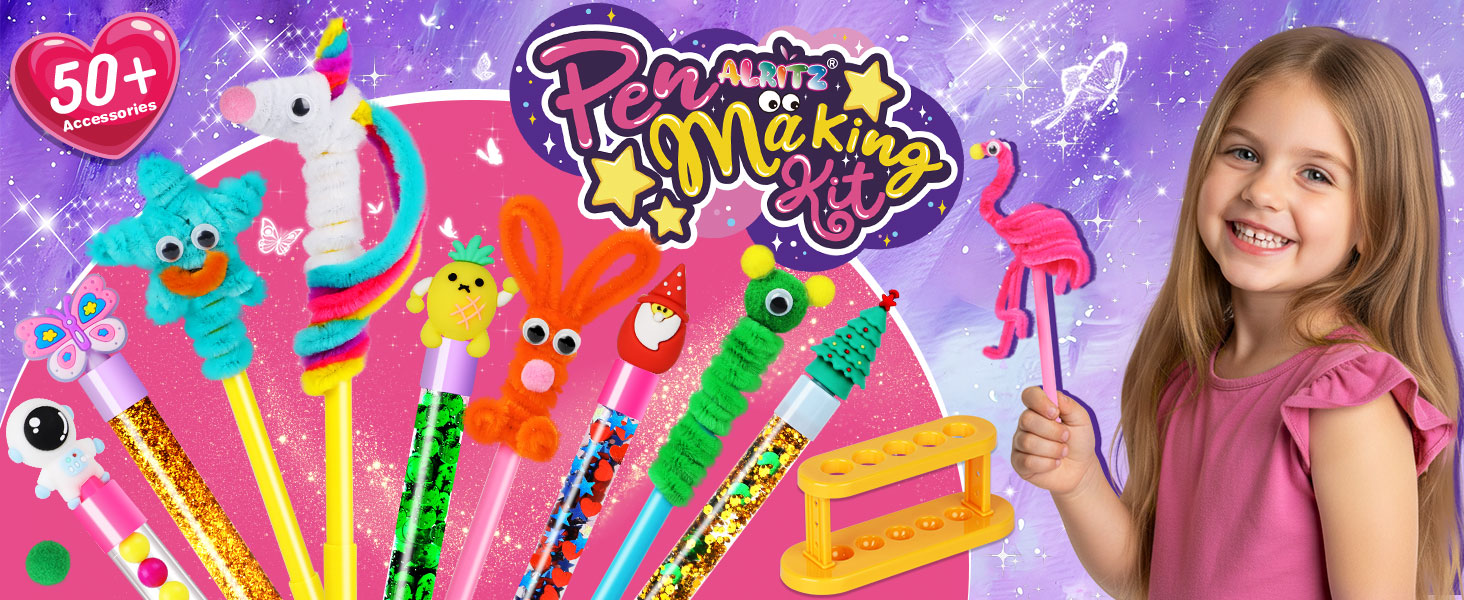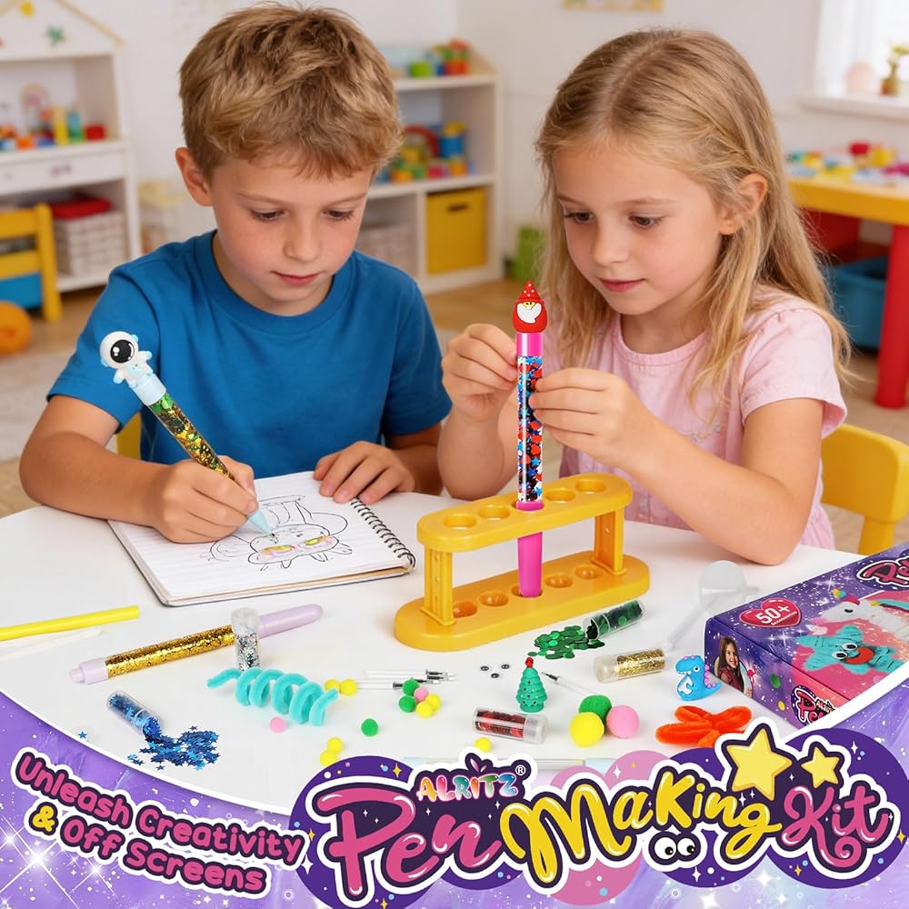 Alritz DIY Pen Making Kit for Kids, Floating Glitter & Pipe Cleaner Craft Kit, Educational Art Toy, Safe All-in-One Supplies, Birthday Party Favors Back to School for Girls and Boys Ages 8-12