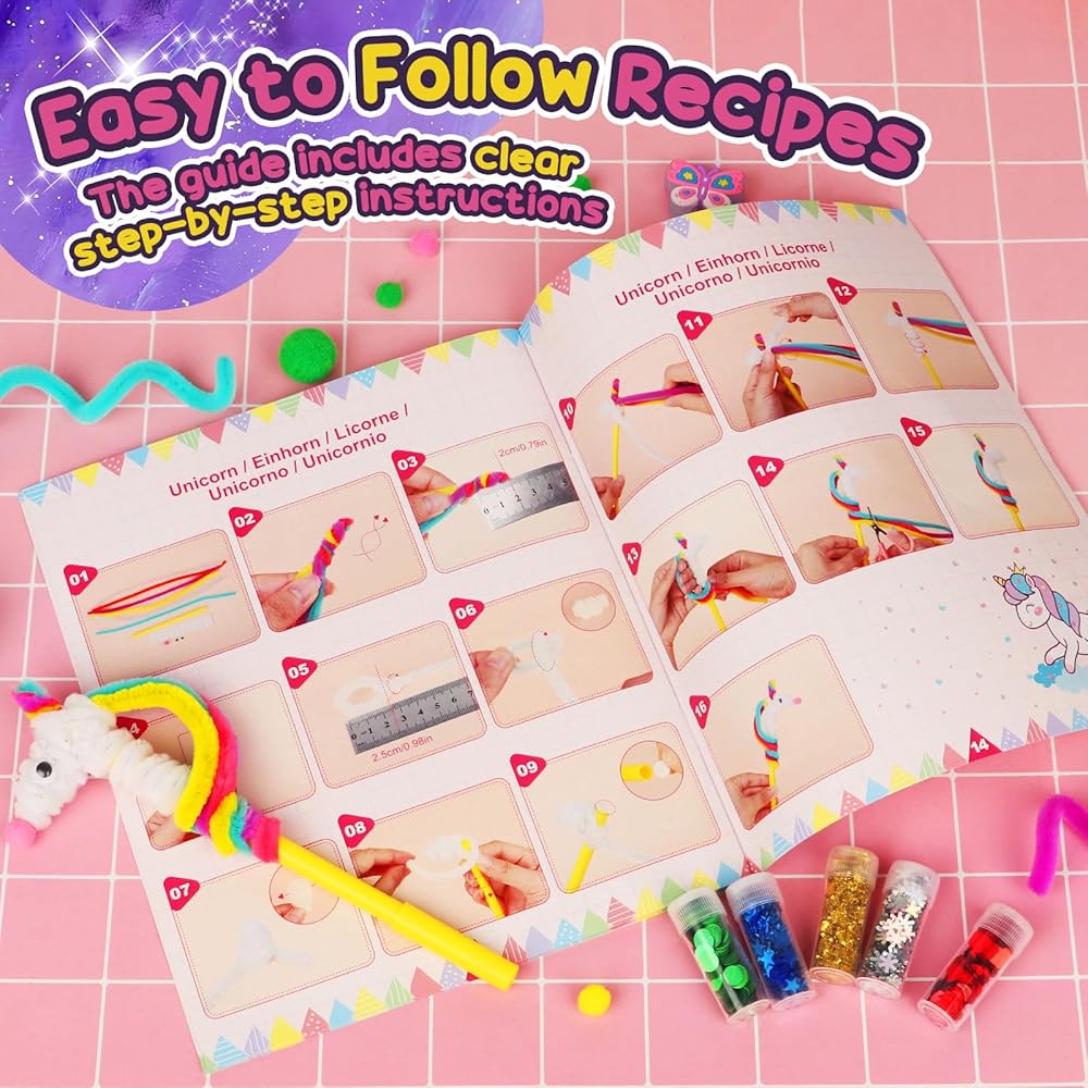 Pipe Cleaner Character Pens: Make 6 whimsical animal & character pens including unicorn, flamingo, bunny, bee, starfish and caterpillar. Easy step-by-step instructions help kids build fine motor skills while enjoying screen-free play