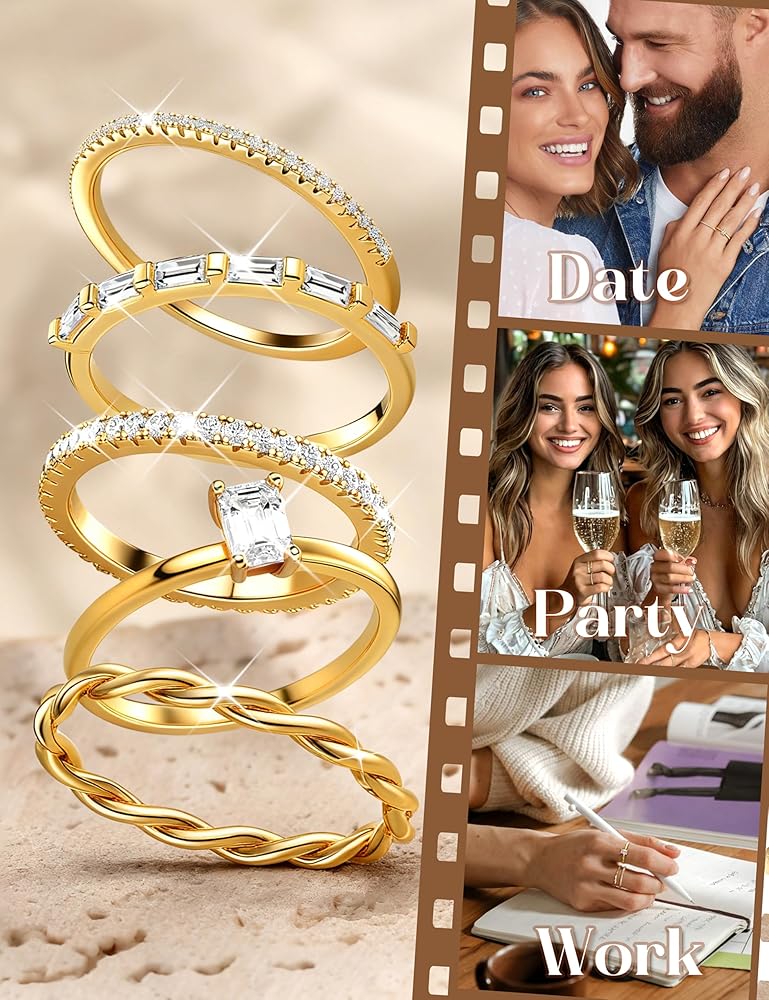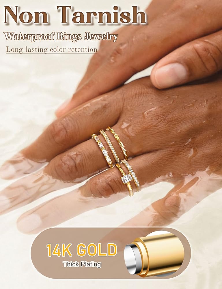 Stacking Fashion Jewelry : The fashion rings for women are a timeless and cherished gift choice, making them an ideal present for your loved ones. Versatile and perfect for Valentine's Day, Christmas, Mother's Day, weddings, Thanksgiving, engagements, anniversaries, birthdays, and more. These 14K gold plated stackable rings are timeless in design, making them ideal for mothers, wives, friends, or any special moment shared with someone special