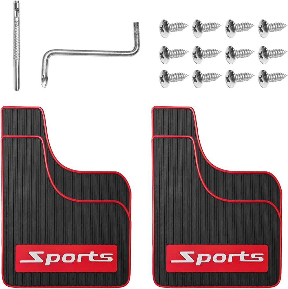 Package Includes: This set includes 4 mud flaps, a hole punch, a wrench, and 12 screws. Two sizes are available for different vehicles, as the larger size (17.09" × 8.86") fits SUVs and business cars, while the smaller size (10.63" × 9.05") fits compact cars. It is recommended to measure their sizes before purchase