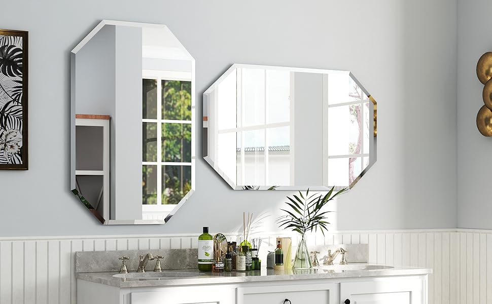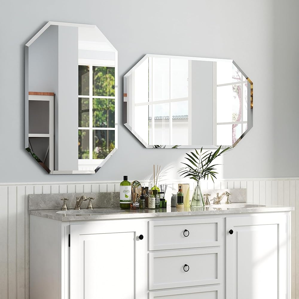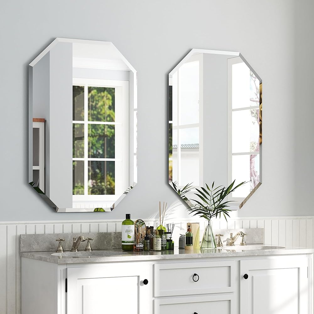Chende 2 Packs Octagonal Bathroom Mirror with Beveled Edge, 18" x 36" Modern Frameless Vanity Mirror for Bedroom, Entryways, Washrooms, Living Rooms, Horizontal/Vertical Hanging