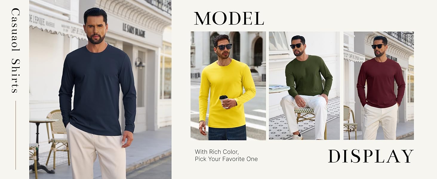 Regular Fit And Versatile Style: Featuring a standard regular fit and a timeless crewneck design, this long sleeve tee offers a comfortable, balanced silhouette that suits most body types. Neat sturdy stitching and classic look make this tee shirts a versatile stample, as foundational layer for casual outings or underneath jackets and shirts