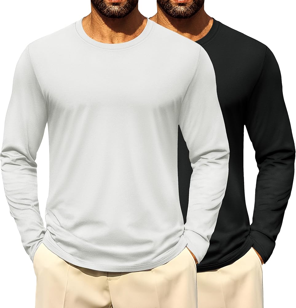 2 Pack Value: This value pack of 2 long sleeve tee shirts is ideal for year-round wear, wearing its own during warmer seasons or as an excellent base layer under a jacket or coat in colder weather, offering year-round comfort. Effortlessly transition from a morning walk to a casual dinner, it's suitable for daily wear, casual fashion, home, office work, dating, vacation time, traveling, or simply enjoying downtime in superior comfort