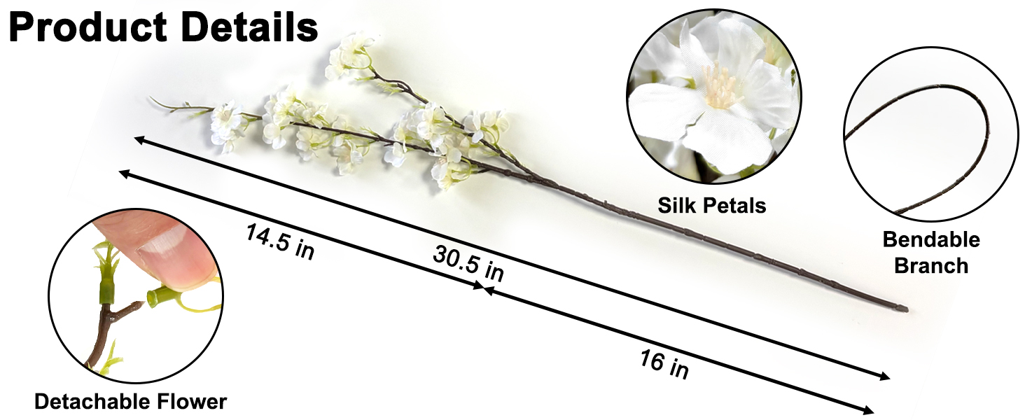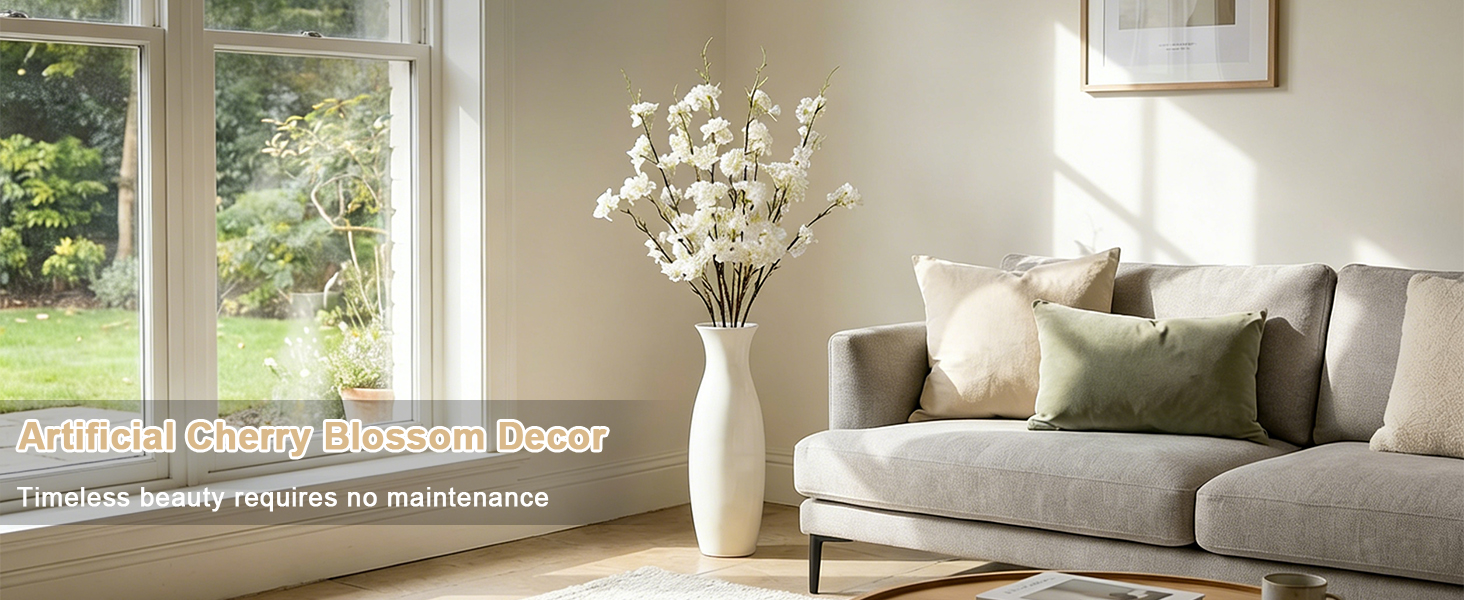 Decor for Any Space: From home and office to weddings and parties, these artificial cherry blossom branches add elegant charm. Use as centerpieces, vase fillers, shelf accents, or even as cherry blossom wall decor for a stunning focal point. These spring florals, spring stems, and cherry blossom decor bring life to any room. Available in classic pink and elegant white, the white cherry blossom branches are especially stunning for a minimalist look.