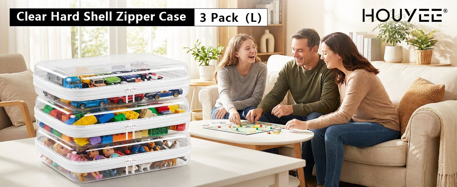 【3 Pack - Large Size】: The HOUYEE clear hard shell zipper case comes in a pack of 3, all featuring the large size of 9.84" L x7.87" W x 2" H. This 3-pack of uniform large-size cases is designed to perfectly meet your bulk storage and categorized organization needs.