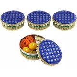 Indulge in the ultimate luxury of this 4 piece stainless steel Ladoo box. Perfect for festivals like Holi, Diwali, and Rakhi, this exquisite gift box holds 250 grams of your favorite mithaai. A festival special, it's also ideal for housewarming. Make a lasting impression with this sophisticated and exclusive desert box.
