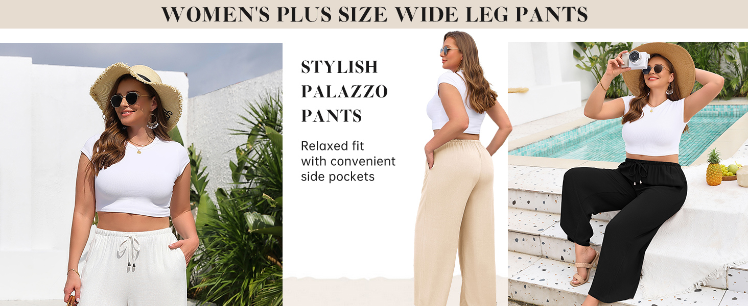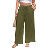 • Feature: Plus size pants for women are featured with adjustable drawstring waist, flowy wide leg, solid color, two side pockets, loose casual style, drapey and flowy full-length. Womens plus size linen pants can perfect hide your shortcoming, skillfully prolong your legs and emphasizes the feminine silhouette