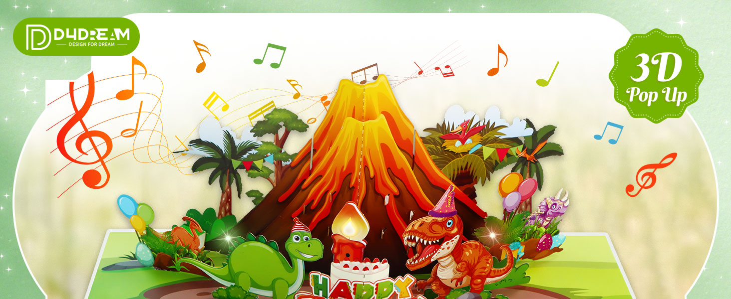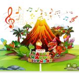 【Spectacular 3D Design】 This 3D birthday card depicts a scene from the Jurassic period, where adorable dinosaurs live in a primeval forest. When you open the card, you can see many dinosaurs such as Tyrannosaurus Rex, Pterodactyl, and Ceratops, as well as a vibrant volcano. Classic birthday music accompanies dazzling lights, creating a joyful and adorable dinosaur kingdom, perfect for children who love dinosaurs.