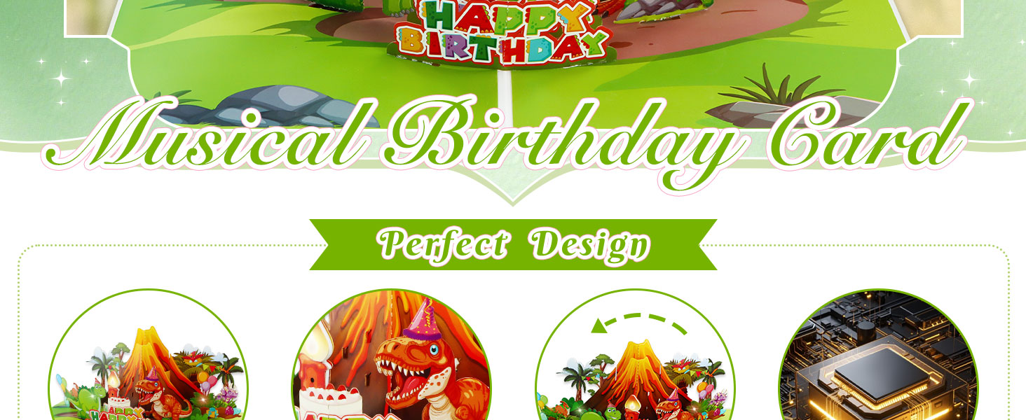【High Quality Material】 3D Dinosaur Musical Birthday Card for kids is made of high quality cardstock that's thick and durable, Our singing birthday card has been refined with over 200 design improvements and 500 electronic component tests, ensuring that your card will continue to impress time and time again.