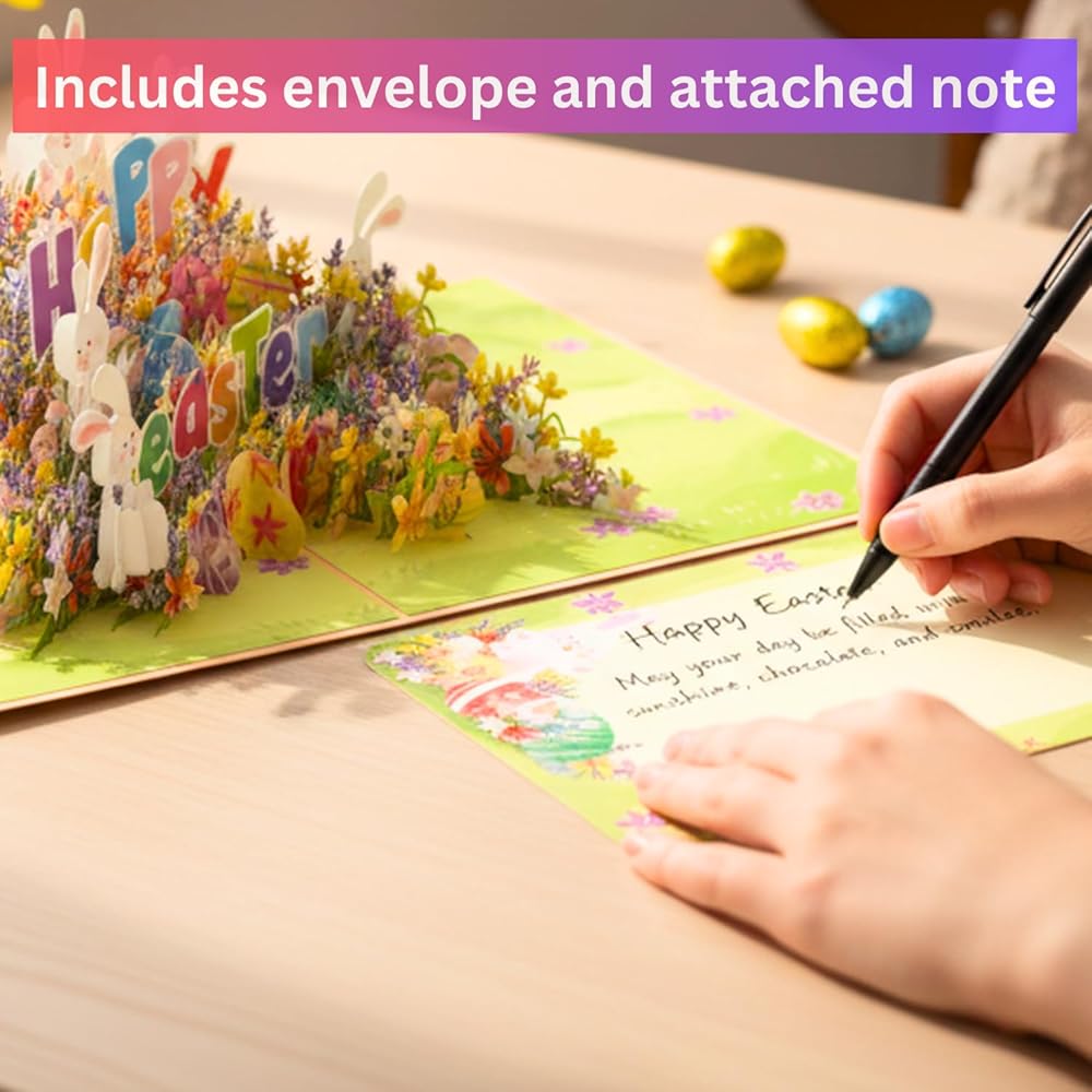 ENVELOPE AND NOTES INCLUDED: The easter card is 6 x 8 inches and comes with a white envelope for easy mailing. In addition, the card includes a note for easy message writing.