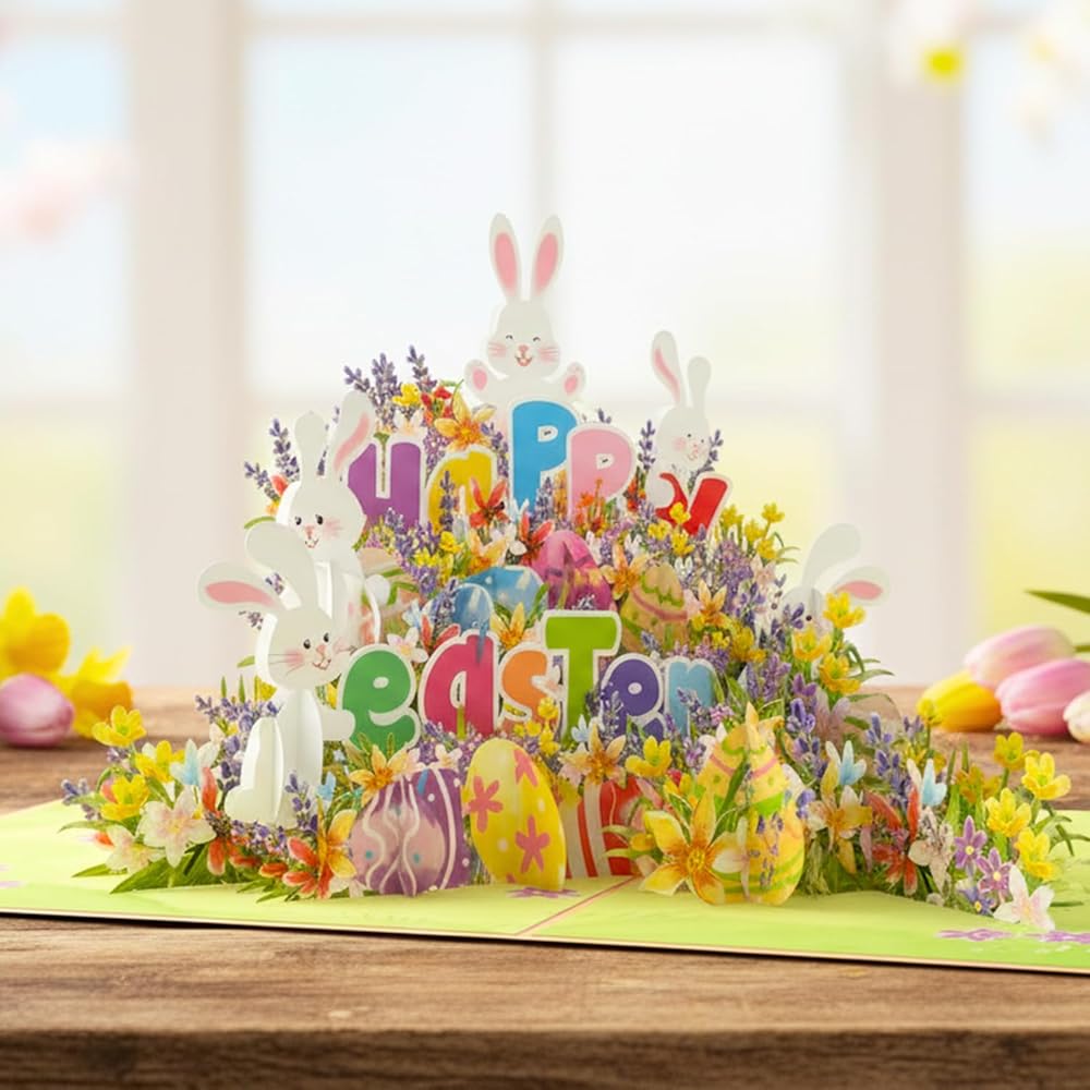 HANDMADE WITH PREMIUM CARDSTOCK: We use heavy-duty cardstock that's thick and durable, yet still soft to the touch. This easter pop up card is meticulously laser-cut and hand-assembled, ensuring that each one is unique and special. When you open the card, the sculpture pops up, creating a 3D visual effect that will leave the recipient in awe, and it is sure to brighten up any recipient's day.