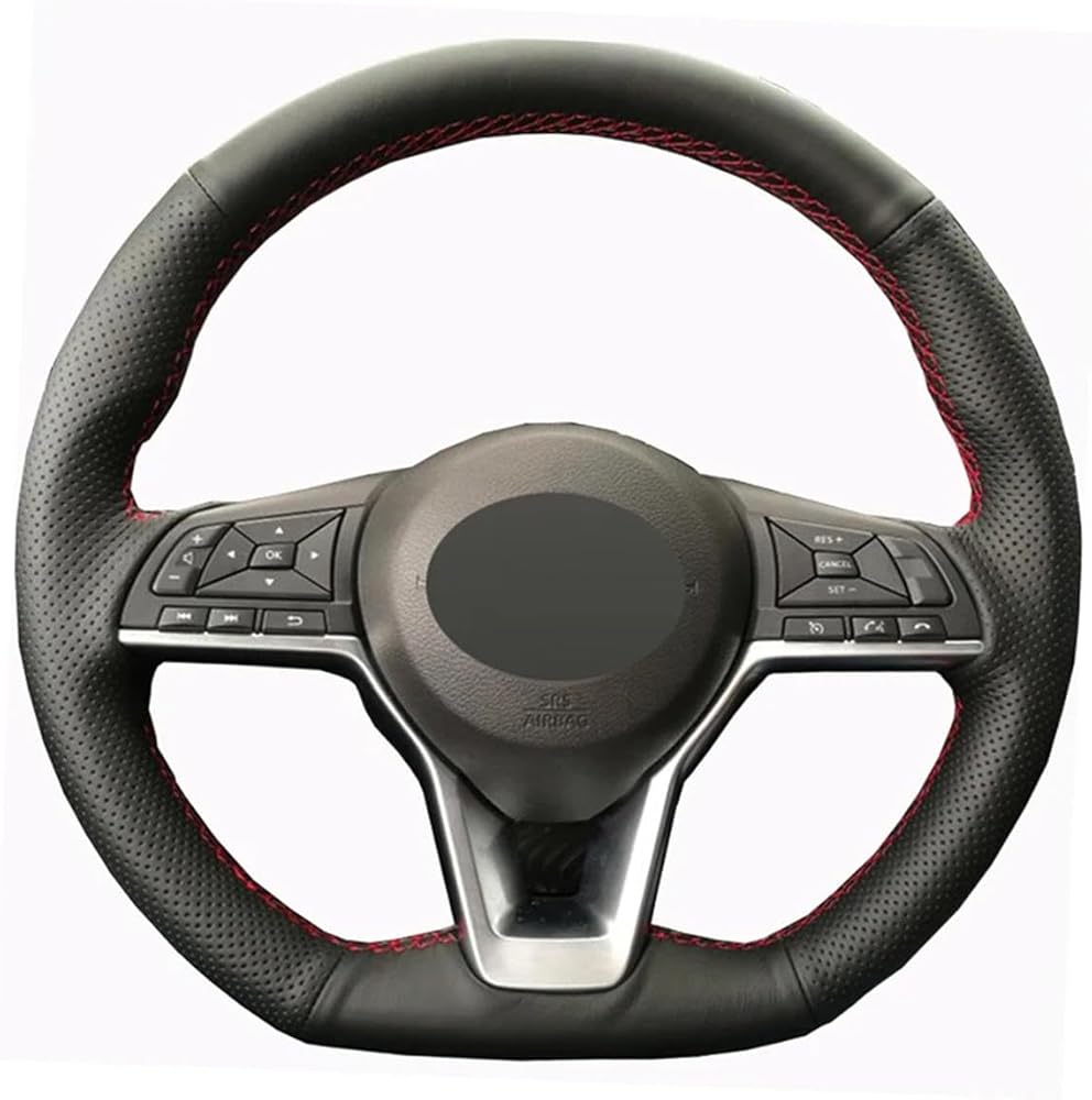Applicable models: Fit For Nissan Sentra 2020-2021Name: Car steering wheel coverColor: Black line, Red line, Blue lineMaterial: LeatherPackage includes: 1*steering wheel cover1*sewing toolsFeatures:The car steering wheel cover is made of microfiber leather which is soft, comfortable and durable.The steering wheel cover has anti-slip lining on the inside, and the anti-slip surface provides better grip and good control.The customized hand-sewn steering wheel cover makes the steering wheel more beautiful and fit better than the universal style. Use thread and needle and enjoy the fun of DIY sewing.This steering wheel cover allows you to hold the steering wheel better and drive safely. It can also keep the steering wheel at a comfortable temperature, keeping it warm in winter and cool in summer.