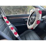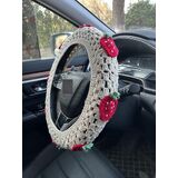 Suitable for mid-size steering wheels measuring from 14" to 15" in diameter,Fit Vehicles, Sedans, SUVS, Vans, Trucks,with Handmade Crochet craftsmanship, stylish, beautiful and distinctive, making your car more impressive, luxurious and eye catching,Perfect decor for your car, make your car unique, also protect your steering wheel new.
