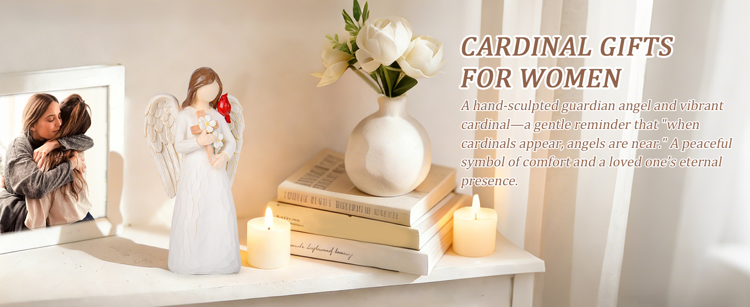 【Cardinal Gifts】In many cultures, the red cardinal is seen as a spiritual messenger — a symbol that a loved one who has passed is near, offering comfort, love, and reassurance. Combined with the angel's serene presence, this piece serves as a daily reminder of eternal love and connection.