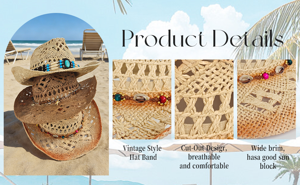 Unique Detachable Decorative Bands & Handcrafted Design This unisex western cowboy hat is fully handcrafted with premium workmanship. Featured with uniquely detachable hat bands, you can freely mix and match to fit your daily outfits, themed costumes or personal preferences, fully showing your unique charm, which is a rare personalized design in similar hats.