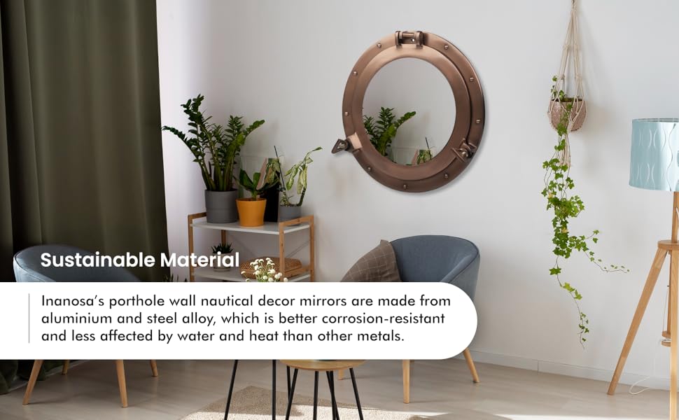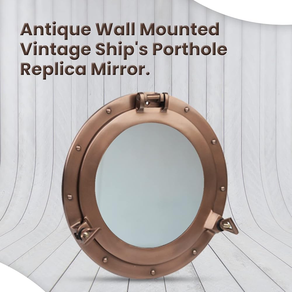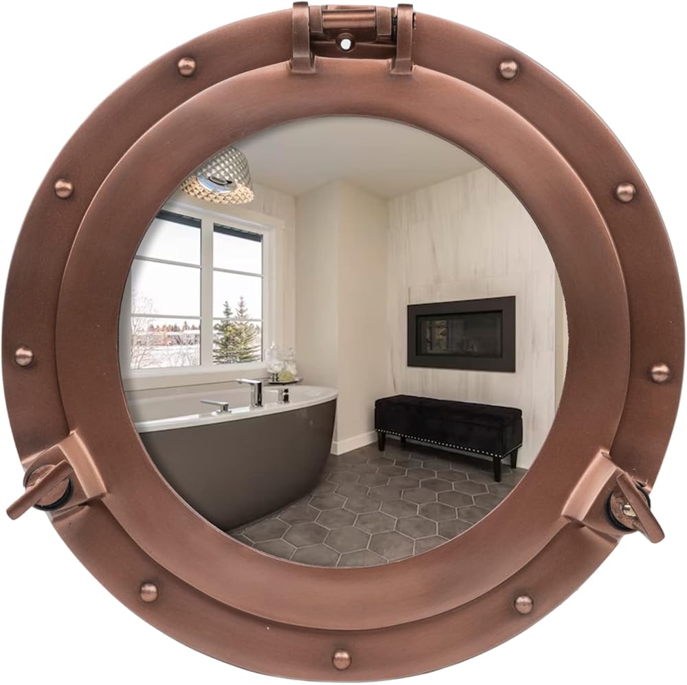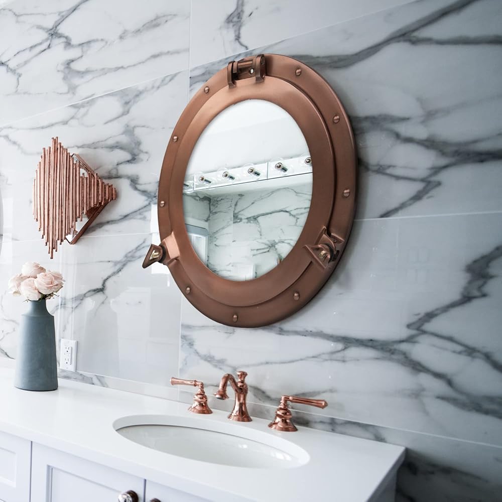 Nautical Bathroom Wall Decor: Authentic ship porthole mirror with a sleek Copper finish, perfect as a bathroom mirror, bathroom wall decor, or bathroom vanity mirror that brings a vintage maritime and pirate coastal charm to any space.
