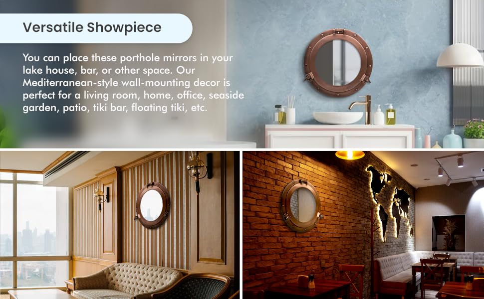 Vintage Ship-Inspired Design: This antique-style porthole mirror is inspired by classic ship and aircraft windows, making it a striking statement piece for nautical decor, pirate decor, coastal decor, and vintage home decor.