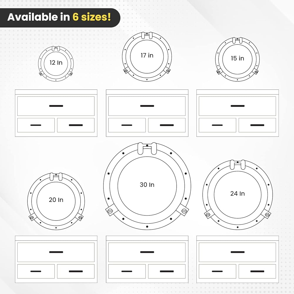 Easy & Secure Installation: Includes wall plugs and screws for strong mounting, ensuring this round wall mirror stays firmly in place as a stylish bathroom vanity mirror, nautical wall decor, or vintage accent mirror.