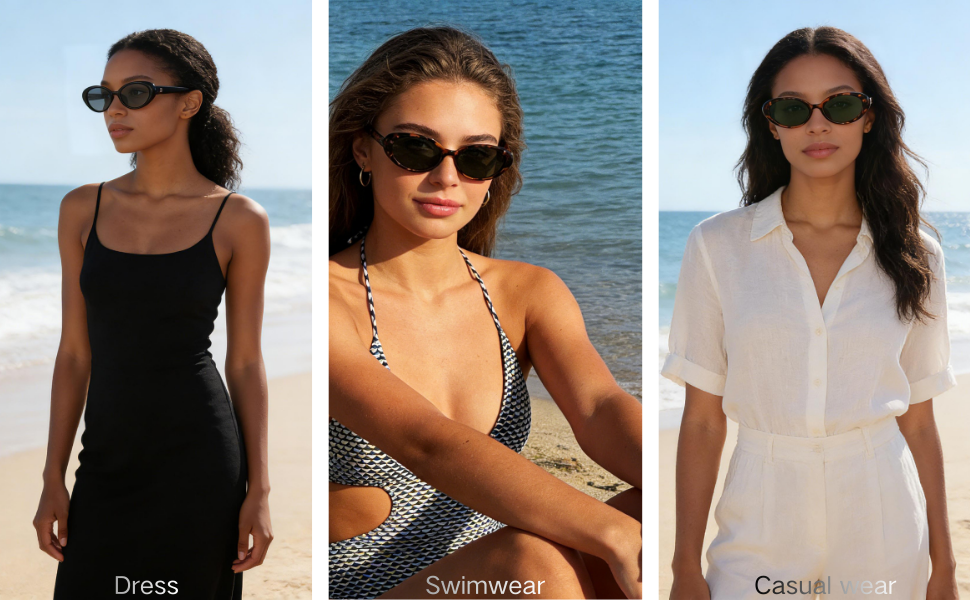 Versatile for Every Occasion: These oval sunglasses for women are your go-to accessory for any event. Ideal for beach days, camping, or casual shopping strolls. Wear them to festive events like cosplay, Halloween, and Christmas parties, or formal banquets and dinners. Great for concerts, getaways, pool parties, summer travels, and capturing the perfect Instagram shot. Wherever you go, these sun glasses women love will elevate your look