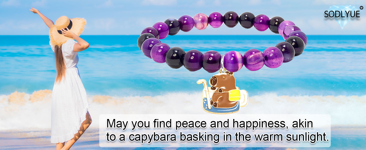 Material: Capybara bracelet made of 8mm natural amethyst stone beads. Please note that the actual item you receive might exhibit slight differences from the product image, as the beauty of natural stones lies in their unique variations.