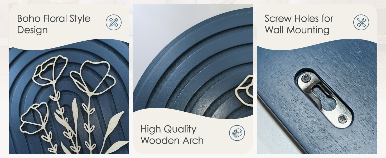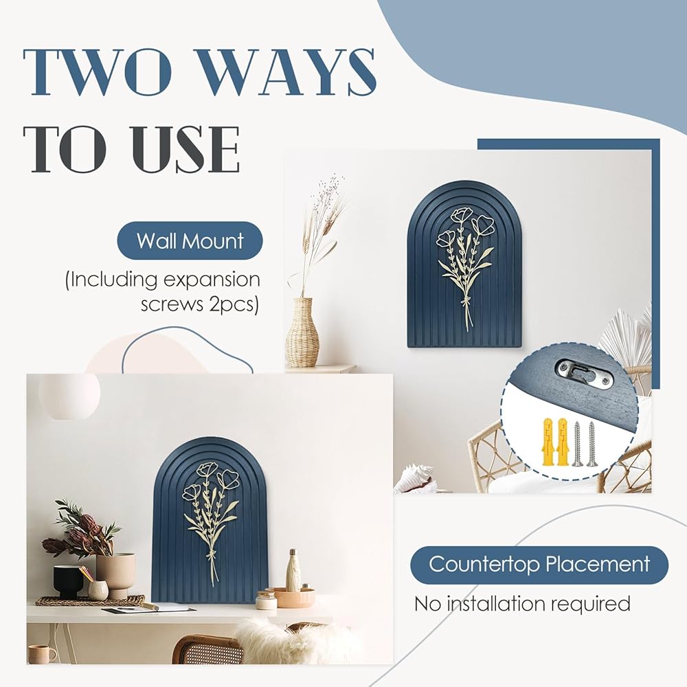 Easy to Install & Ready to Hang: This book shelf decor aesthetic floral arch wall art decor is the perfect accent to any minimalist modern home decor or shelf. Each piece has a pre-installed hook on the back for wall hanging (comes with screws). This wood decor for wall can also be placed on a table, shelf, cabinet or anywhere else