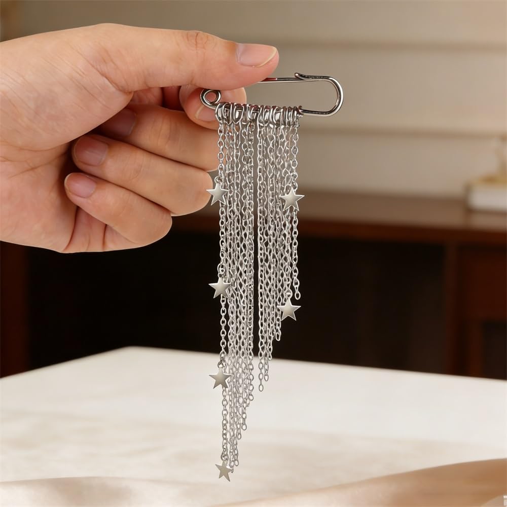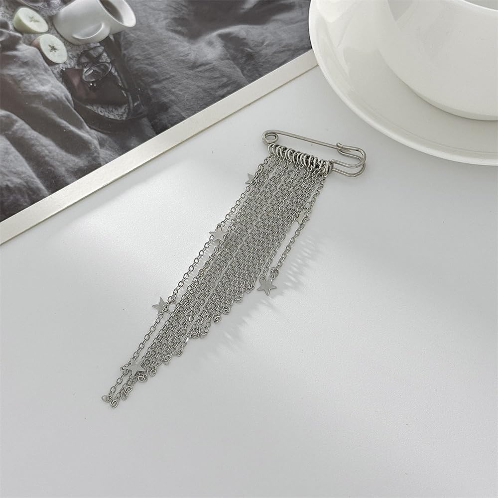 Product Name: Brooch Pins with Metal Chain Star Tassel