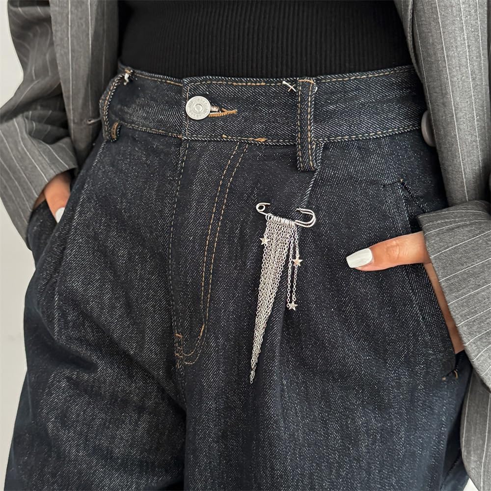 The decorative pins for clothes adopt an asymmetric hanging design, with double pins as the base. The tassel chains of varying lengths sway gently with the action.