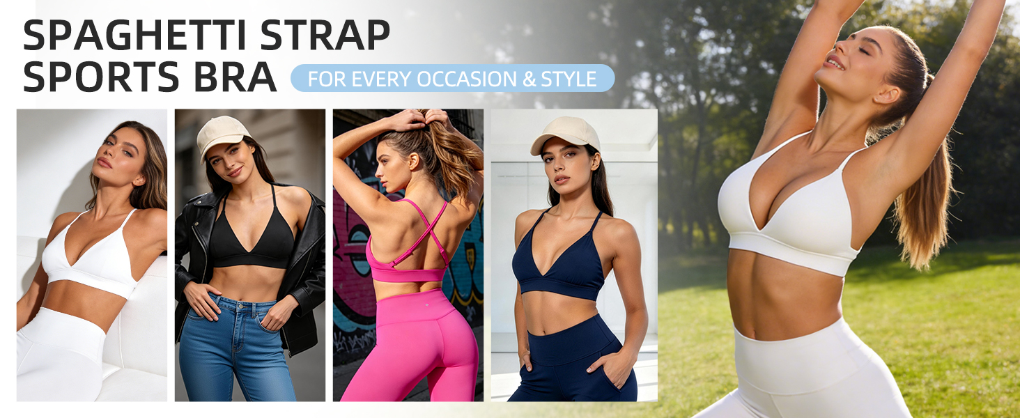 【Versatile Style for Every Occasion】Classified as a low support adjustable thin straps gym bra. Wear as active crop for Pilates class or pair with jeans for everyday wear. Perfect summer layering piece under sheer tops or alone as a v-neck bikini top at the beach or pool. The transitional activewear works for morning walks, studio sessions, or casual brunch. Your new wardrobe essential