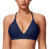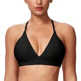 【Flattering Deep V-Neck & Removable Padding】Sexy triangle bra, deep V plunge crop top is designed to complement your figure while offering light support yoga bra functionality. Perfect for low cut back tops, it pairs beautifully with your favorite tank. Criss cross padded yoga top sports bra, wear as a padded triangle bralette for sleek coverage, or remove pads for a softer, natural shape