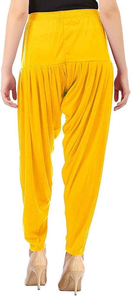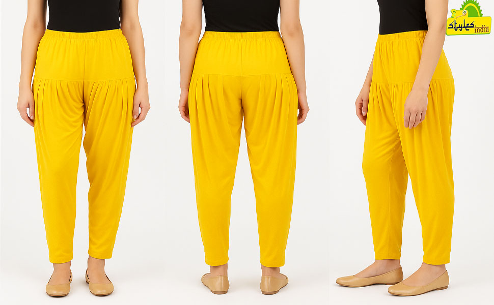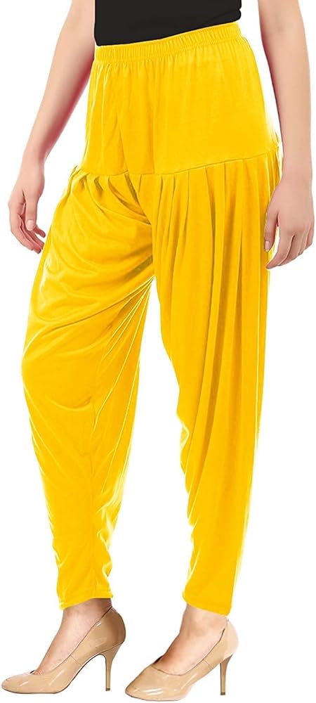 Women's Cotton Spandex Patiala Pants – Stretchable Ethnic Bottom Wear with Pleats for Casual & Traditional Outfits (Golden Yellow)