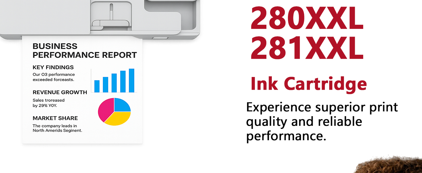 4. High Page Yield Each PGBK 280XXL prints up to 600 pages; each 281 Black prints up to 360 pages; each Cyan/Magenta/Yellow 281XXL prints up to 830 pages (based on 5% A4 coverage). High-capacity ink reduces replacement frequency and supports large-volume printing tasks.